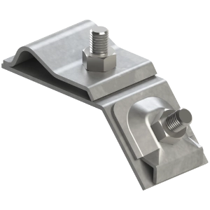 W połączeniach instalacji odgromowej. Służy do mocowania drutu odgromowego w pozycji pionowej lub poziomej na obrzeżu rynny.